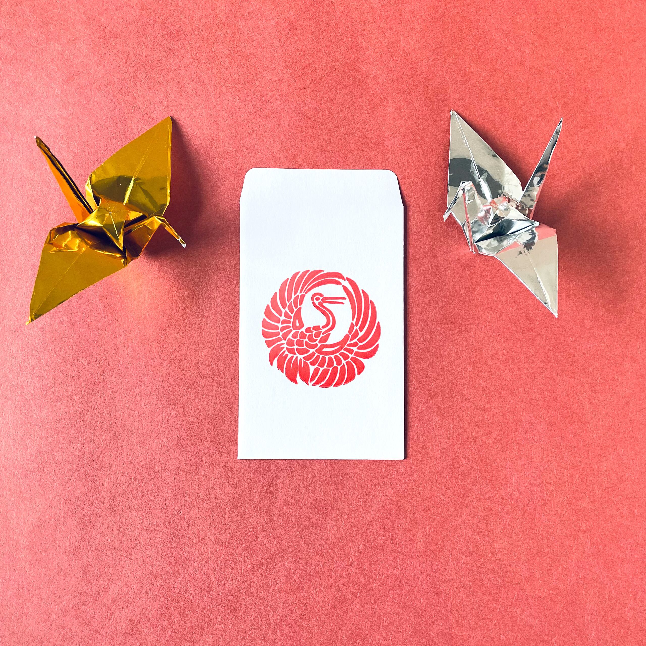 おめでたい柄の代表格である『鶴』をモチーフにぽち袋を活版印刷で作成しました。
